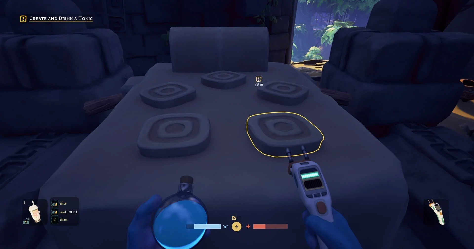 Убедитесь, что у вас достаточно здоровья: при падении вниз вы получите урон, если приземлитесь с большой высоты.