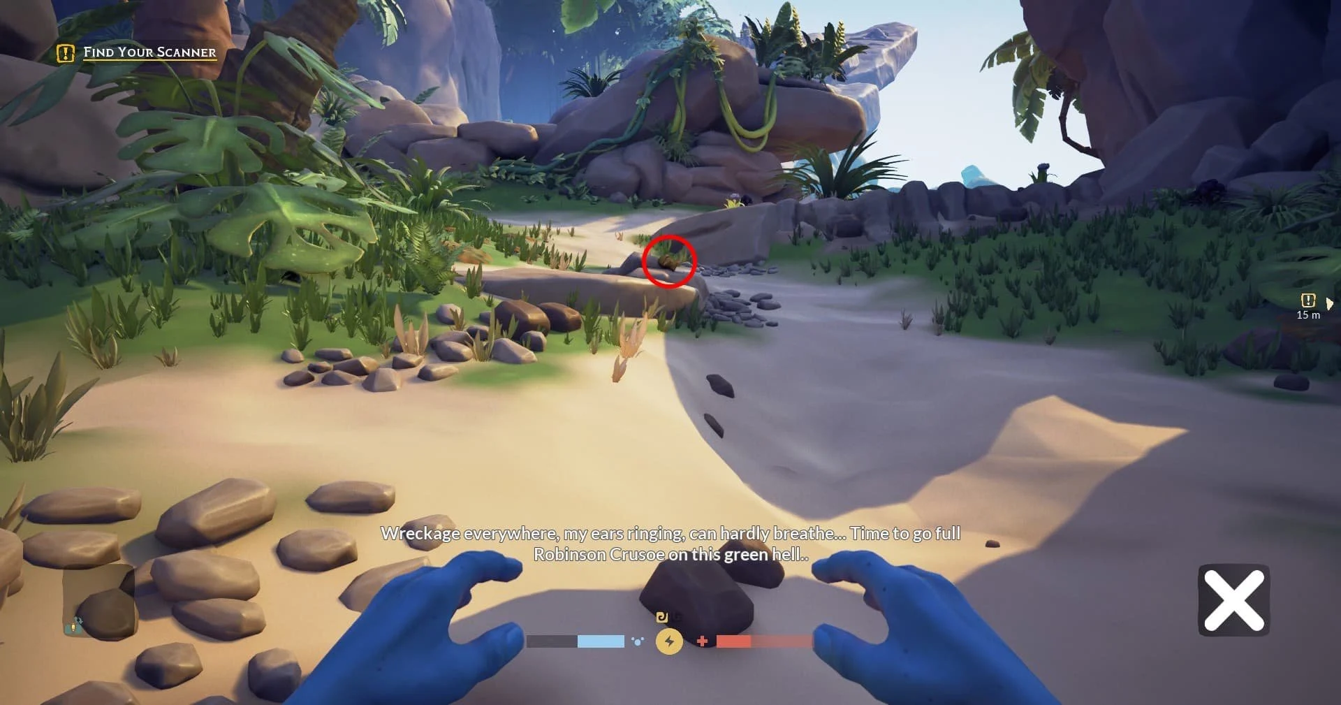 Прыжки и управление с помощью ранца-реактивника — если навыки контроля прыжка у вас хорошие, можно двигаться по холмистой местности позади вашей капсулы и оттуда нацелиться на нужный выступ.