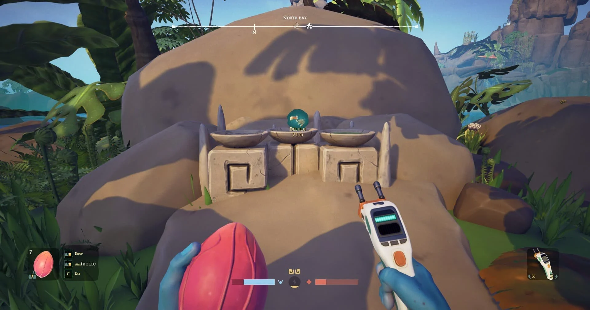 После того как вы исцелите Грога в начале игры, он попросит вас помочь восстановить тотем Big Bird — фигуру, похожую на крылатое существо, символизирующее птицу-додо или духов предков.