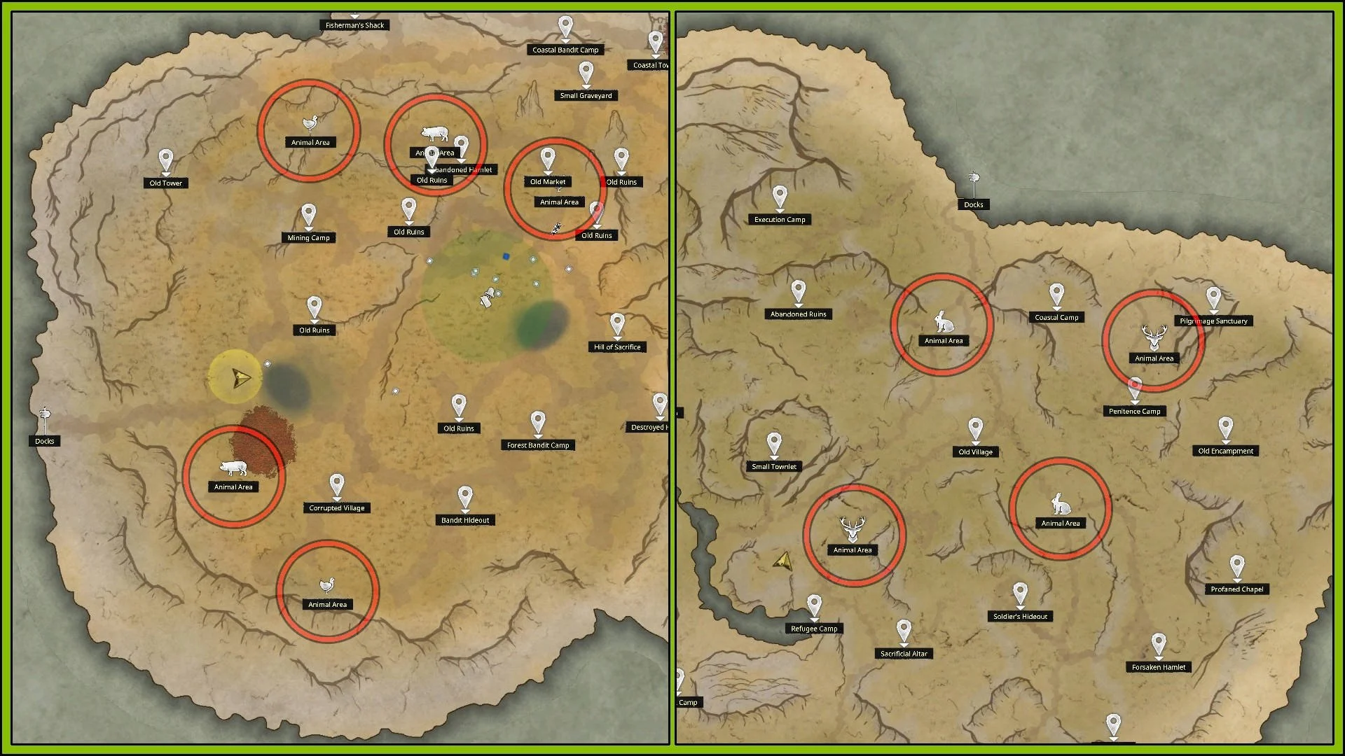 На карте есть специальные зоны — Animal Area. В каждой такой зоне обычно появляется одно животное определённого типа.
